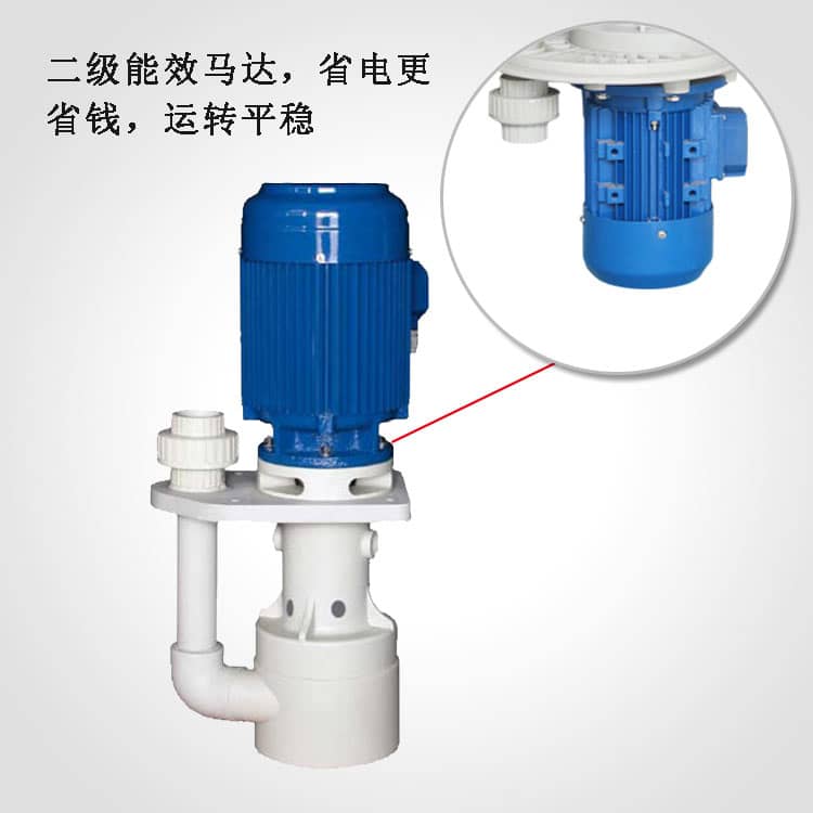 .輕巧的外形及安裝板的設計適合于槽內使用且配管及保養均很方便。 .雙葉輪設計,可防止氣泡發生。 .雙干式軸封設計,有效阻隔酸氣進入馬達算壞軸封。 .安裝板下的O環可防止槽內蒸氣逸散污染環境。 .采用各種塑鋼材料射出成型可抵抗大部份的化學性,耐酸,耐堿。 .適合各種酸堿液循環,冷卻,噴洗設備,廢氣塔使用。